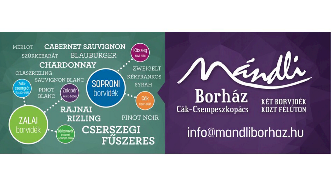 Das Mándli Weinhaus baut Weine auf zwei Weingebieten – auf dem Zalaer und dem Soproner Weingebiet an. Der Weinkeller befindet sich auf dem halben Weg zwischen Kőszeg und Zalabér.