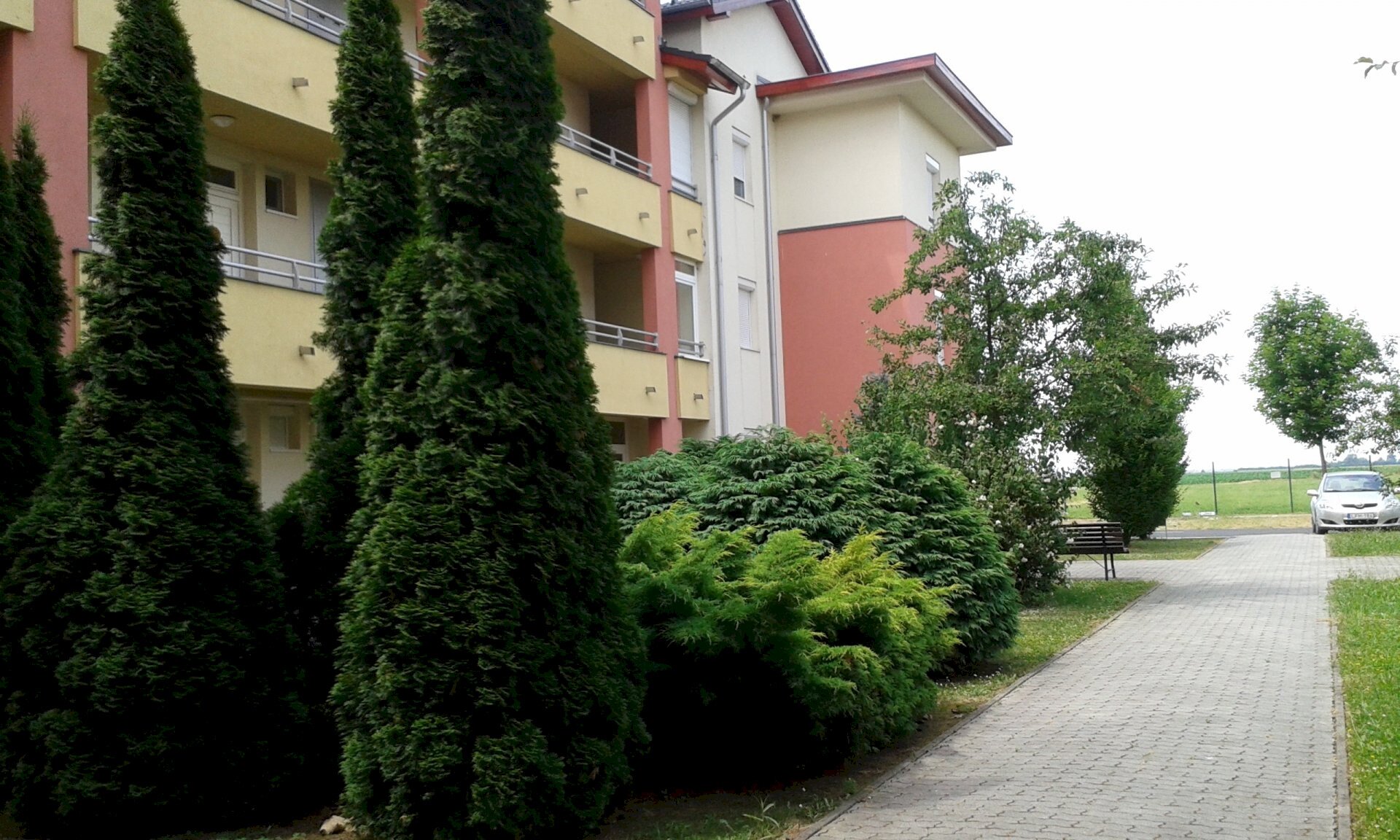 Our 52-m2, one-roomed apartment, built on the first floor of a modern apartment house nestled in a green parkland right adjacent to Bük's famous golf court, is only 450 metres from the town's internationally renowned Medicinal Spa. The studio flat has been arranged with state-of-theart furniture and household appliances (ceramic cooker, electric oven, cooker hood, coffee machine, toaster, kettle, microwave oven, fridge), and also features a private bathroom with a bathtub, and a separate toilet. The double room opens from the spacious dining room and the living room has satellite TV and a convertible sofa. The living room opens to a southfacing 5-m2 balcony with comfortable outdoor furniture. In the closed garden of the studio there are parking facilities; the apartment house has an elevator at our guests' disposal.