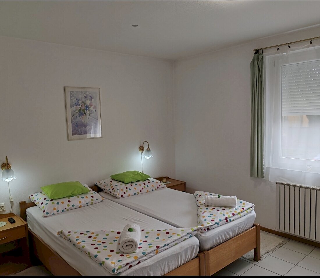 6 szoba 6 fürdőszobával 15 fő elhelyezésére Teljesen felszerelt konyha,társalgó, kerti kiülő, Önellátó, de kérésre: bőséges reggelivel