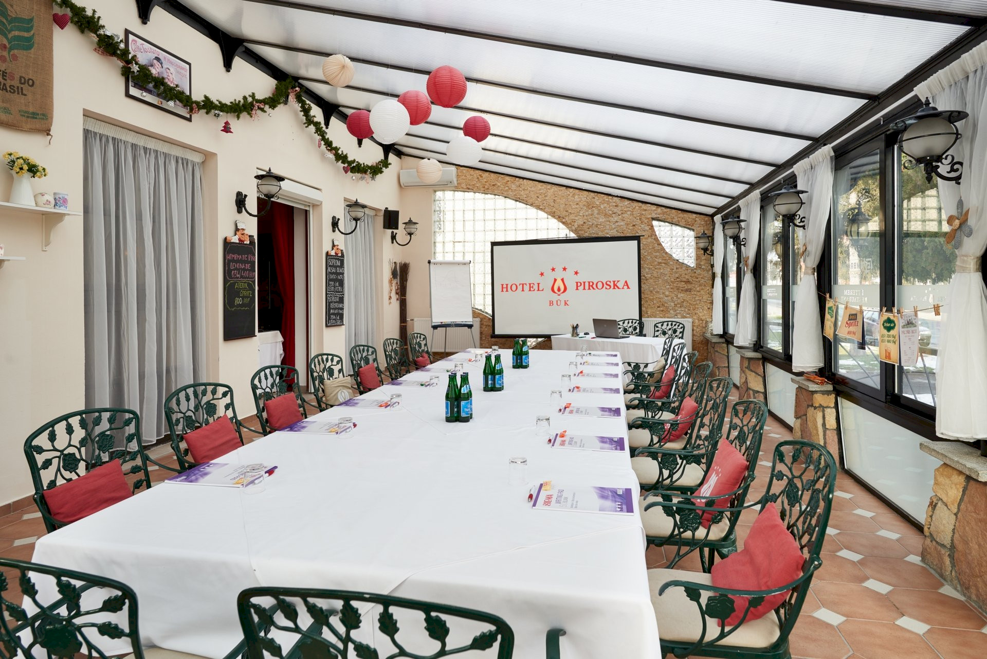 A vendégek szórakozását színes esti programok és élőzene garantálja, melyeknek tavasztól őszig a fedett nyári terasz ad helyet. (élőzene 18-22 óra között).